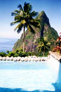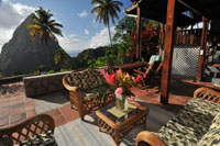 Das Haus ist zum Meer und zu den Pitonbergen hin vollständig offen, sodaß man von jedem Raum aus die