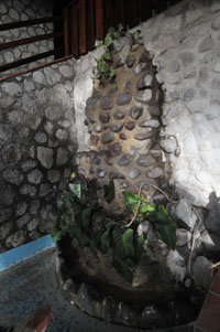 Mitten im Haus befindet sich ein Wasserfall, der den direkt angebauten Swimmingpool ( 8m x 4m ) speist